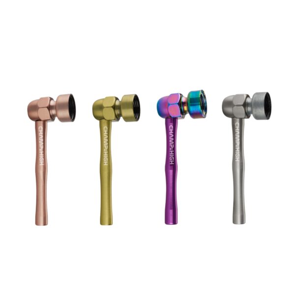 Tubo modello Champ-High in alluminio, perfetto per la semplicità del suo design, disponibile in diverse colorazioni: oro, rame, argento e blu sfumato. La base è piatta per il posizionamento verticale. Il braciere e lo stelo sono smontabili dal corpo tramite una filettatura, per una perfetta aderenza e un facile smontaggio per la pulizia.